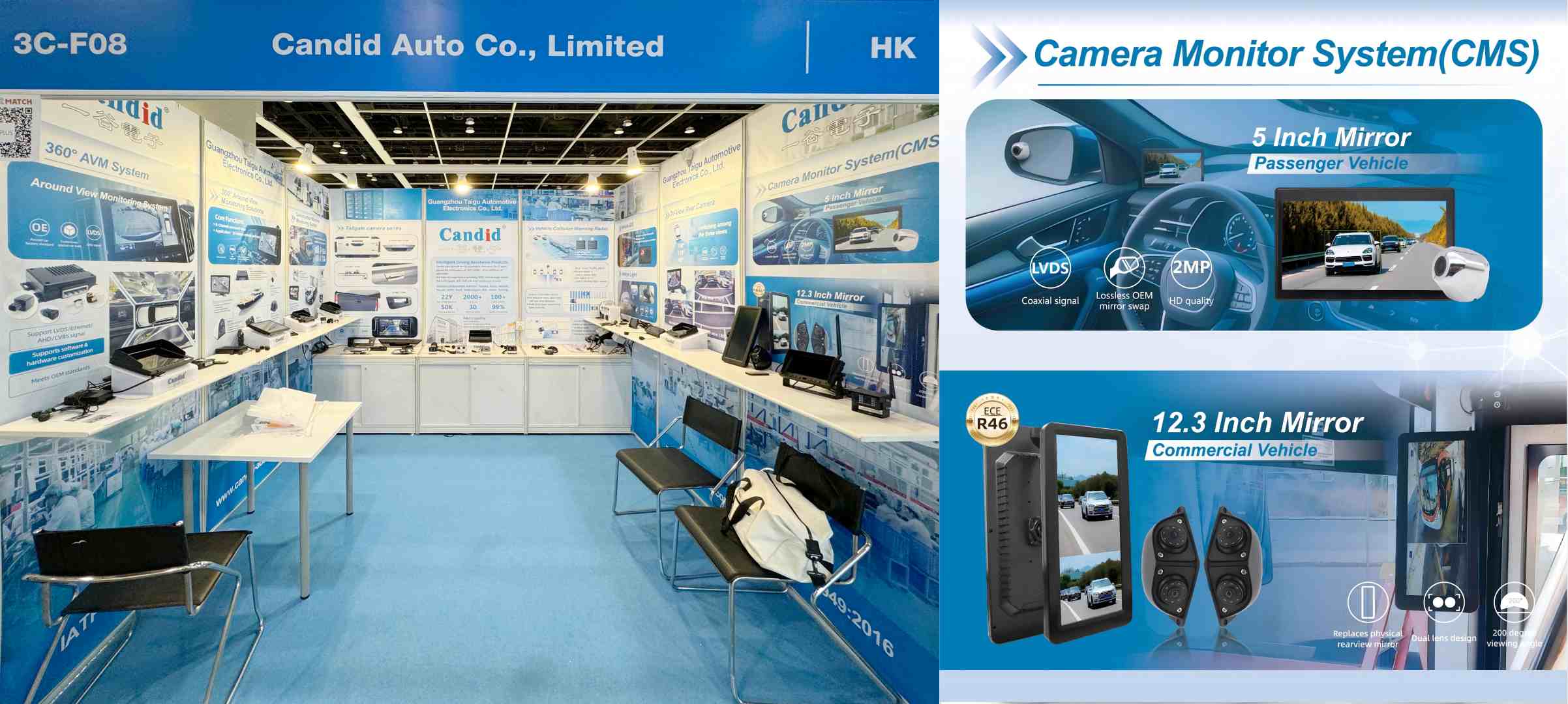 10月13日、CandidはAIブラインドスポットモニタリングソリューションを導入し、歩行者と車両の認識機能を備えたCMSスマート電子ミラーシステムを発表しました。このシステムはカスタマイズもサポートしています。